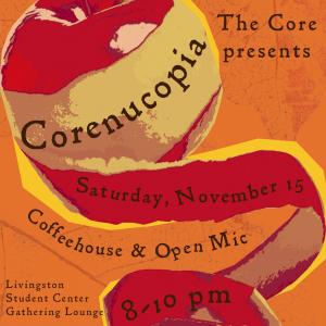 90.3 The Core's annual Corenucopia Coffeehouse will be hosted on Saturday, November 15th, at 8 PM in the Livingston Student Center Gathering Lounge. Come for lovely acoustic performances, DJ mingling, free refreshments, and classic autumnal ambience. Yes, there will be coffee!