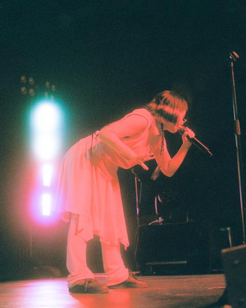 Sure enough, anticipation enveloped the relaxed bodies; with no delay, the stage dimmed and the glow of red arose on the screen. Yaeji opened with "Submerge FM," her light but grounded voice swimming with the warm hues behind her. She sang as she interlocked eyes with the audience and reached out from the stage in bubblegum pink energy. In no time, the crowd grooved along, bobbing their heads and waving their arms in synchronization. "One, one, one, one, one day, adds to one week, one month..."